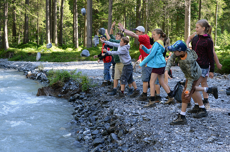 Bereits um 6:30 Uhr war es mit dem Schlaf vorbei. Der Himmel war stahlblau, so starteten die Meisten die Wanderung im T-Shirt und kurzen Hosen. Allerdings sorgte eine frische Bise anfänglich noch für etwas Hühnerhaut. Bei der Talstation Eggeschwand ignorierten wir die Gondel der Luftseilbahn Sunnbüel, weil wir den Weg Richtung Gasterental einschlugen. Eindrücklich sind bereits der Weg und die schmale Strasse, welche anfänglich in den Fels gehauen sind weil die Schlucht derart eng und steil ist. Nach einer knappen Stunde erreichten wir die Ebene des Gasteretals, die landschaftlich sehr schön ist. Unser Aufstieg führt aber weiter. Der abenteuerliche Weg wurde immer steiler und war stellenweise mit Seilen ausgestattet wo man sich halten konnte. Gefährlich war es jedoch nicht, auch wenn Vorsicht und Respekt angebracht waren weil wir uns am Rand einer Schlucht befanden. Als die Schlucht wieder flacher und breiter wurde legten wir eine kurze Pause ein und liessen den Bach vor uns vorbei plätschern. Ein letztes Wegstück lag noch vor uns bis zu den Arvenseeli auf 1900m. Dort angekommen liessen wir uns am Ufer eines kleinen lauschigen Bergseelis nieder. Zeit für das Mittagessen und für eine längere Pause. Obwohl das Wasser im Seeli bloss ca. 12°C "warm" war liessen es sich die Jüngeren nicht nehmen, ein mehr oder weniger kurzes Bad zu geniessen. Gestärkt, erfrischt und ausgeruht setzten wir unsere Wanderung nach dem Mittag fort. Vom Sunnbüel erfolgte ein 800 Meter langer und ziemlich direkter Abstieg, welcher Beine und Füsse nochmals forderten. Etwas müde und einige mit etwas Sonnenbrand erreichten wir um 16:30 Uhr wieder unser Lagerhaus. Die Dusche im Anschluss war eine verdiente Wohltat. Als sich ein feiner Duft von der Küche her ausbreitet war dies das Zeichen dafür, dass das Abendessen bevor stand. Unsere verbrauchten Kalorien kompensierten wir heute bei einem Curry Reis und etwas später wurden wir noch mit einer Schogglicreme verwöhnt. So schön kann ein Lagertag sein.