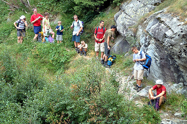 Wer früh aufsteht hat mehr vom Tag. Aufgrund der unsicheren Wetterentwicklung gab es bereits um 5:45 Uhr Tagwache, so dass wir mindestens den Vormittag trocken "überstehen". Mit dem Bus fuhren wir nach dem Frühstück Richtung Lukmanier. Die erste (taffere) Gruppe stieg bereits in Dangio aus. Durch das Val Soi erfolgte der Aufstieg zur Adula Hütte, welche bereits nach 3 Stunden erreicht wurde. Die Gegend dort war malerisch schön und der Weg tadellos. Kurz bevor wir die Hütte erreichten kam uns bereits die Sonne entgegen. Wir genossen die Ruhe und Aussicht von der SAC Hütte aus, bevor wir durch das Val di Carassino zum Luzzone Stausee weiter wanderten. Unterwegs machten wir Mittagsrast an einem kleinen See. Die Hartgesottenen gönnten sich bei dieser Gelegenheit noch ein Bad im kalten Fluss. In nur wenigen hundert Meter Entfernung und ohne Wissen voneinander (es gab an diesem Ort für einmal keinen Handy Empfang) rastete die zweite Gruppe. Diese nahm den Aufstieg von Olivone aus unter die Füsse und wanderten auch via Compietto zum Lago di Luzzone. Die Route der zweiten Gruppe war kürzer und es gab weniger Höhendifferenz zu bewältigen. Dafür stiegen Sie vom Stausee noch nach Campo ab. Die zweite Gruppe war noch nicht beim Lago di Luzzone, als plötzlich Donnergrollen hörbar wurde. Erste vereinzelte Wassertropfen fielen auf uns herab. Wir erreichten aber noch rechtzeitig das Restaurant bei der Staumauer, als es kurz darauf waagrecht zu regnen begann. Der Regen, wenn auch nur von kurzer Dauer, ist Segen für das Tessin und uns tat dies nicht weiter weh. Einziger Wermutstropfen war, dass wir erstmals nicht draussen Essen konnten. Dies hatte aber keinen Einfluss darauf, dass die Älplermagronen reissenden Absatz fanden.