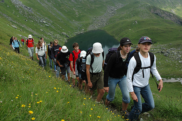Als es um 6:00 Uhr Tagwache gab, war der Himmel schon meist wolkenfrei. Mit Bahn und Bus fuhren wir nach Elm, wo uns die Sportbahn die ersten 500 m Aufstieg abnahm und nach Ampächli brachte. Die meisten umliegenden Berge waren noch von Wolken umhüllt, als wir bei Sonnenschein losmarschierten. Der Aufstieg war sehr angenehm und wir wanderten leichfüssig in die Höhe. Der angenehme Duft der Alpenrosen, welche unseren Weg säumten, lag in der Luft. Am Chüebodensee machten wir eine längere Pause. An eine Erfrischung im See war im Moment nicht zu denken. Anschliessend bewältigten wir den letzten Teil des Aufstieges, bis wir das Wildmadfurgelli auf 2294 m Höhe erreichten. Ein zügiger Wind wehte uns um die Ohren und ein interessantes 360° Panorama bot sich uns, als wir noch den nahgelegenen Vorderen Blistock erklommen. Auf dem Wildmadfurgelli machten wir eine ausgiebige Mittagsrast, bevor es wieder bergab ging. Zuerst führte der Weg Richtung Kärpf, dann folgten wir dem Niderenbach bis zum Garichti Stausee. Da einige Leiter unter "Zwang" standen (verlorenes Spiel), folgten hier die Sprünge ins erfrischende Nass. Nachahmer folgten und man genoss das kurze Bad im See. Der Garichti Stausee war auch das Ziel, so dass uns für diese Tour keine weiteren Anstrengungen mehr bevorstanden. Mit Bahn und Bus kehrten wir nach Mollis zurück und erreichten kurz nach 19:00 Uhr wieder unser Zuhause. Hinter uns hatten wir eine schöne und abwechslungsreiche Wanderung. Gleich nach dem Eintreffen begaben wir uns zur nahegelegenen Feuerstelle, wo jeder sein individuelles Spiessli zusammenstellen konnte und dem Grilleur in die Obhut geben konnte