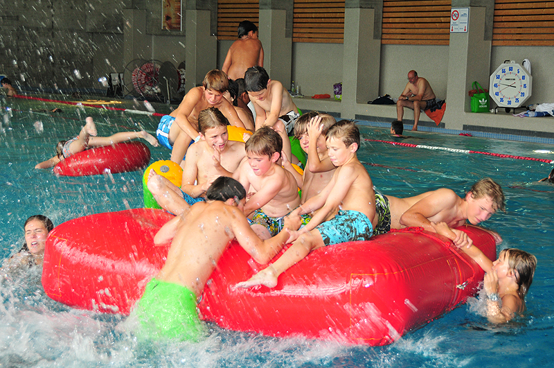 Heute war Sightseeing in Davos angesagt. Insgesamt 18 Posten galt es beim OL zu finden, wobei die Posten anhand von Fotos gefunden werden mussten. Auf den Fotos waren Ausschnitte von Gebäuden oder Skulpturen zu sehen, welche irgendwo in Davos zu finden waren. Wer die (erlaubte) Mithilfe von Einheimischen in Anspruch nahm, konnte sich unter Umständen viel Wegstrecke sparen. Daneben gab es noch 4 Posten, an welchen man Bonuspunkte sammeln konnte indem man die gestellten Aufgaben gut löste. Brillieren konnte man dort bei der Hockeytorwand, mit Schätzfragen beantworten, Musiktitel erraten und Pedalo fahren. 7 Gruppen in Zweier- oder Dreierteams waren den ganzen Morgen unterwegs. Wer neben dem Blick auf die gesuchten Sujets auch noch einen Blick in die Berge warf sah, dass es in der letzten Nacht bis unter 2000m geschneit hat! Dies war auch deutlich zu spüren, lagen die Aussentemperaturen klar unter 10°C. Wer also mit flottem Lauschritt unterwegs war hatte nicht nur eine gute Zeit beim OL, man bekam unterwegs auch etwas wärmer. Um 12:30 Uhr waren alle Gruppen wieder zurück im Lagerhaus und wir konnten uns mit Älplermagronen und Apfelmus stärken. Der Nachmittag fiel dann buchstäblich in Wasser, denn wir begaben uns zum Davoser Hallenbad. Das Hallenbad bot einiges, für Gross und für Klein. Während dem die einen im geheizten Aussenbecken sich auf den Sprudelliegen gemütlich machten, kämpften die anderen drinnen um die Schwimmflosse. Die Zeit am Nachmittag verflog wie im Nu, so dass das Nachtessen zeitlich nach hinten verschoben wurde. Der Bade Trip war auch ein Garant dafür, dass alle Lagerteilnehmer wieder porentief rein wurden. Nach der Rückkehr ins Lager folgte schon bald das Nachtessen, wo wir uns mit „Chögelipastetli“ und Reis verköstigen konnten. Es dauerte nicht mehr lange bis zur Rangverkündigung vom OL und dann waren die Sieger erkoren. Als einzige Gruppe welche alle Posten gefunden hatte gewann klar die Gruppe 1 mit Ursina Wigger, Jonas Stofer und Andrin Grüter. Wer mochte, konnte im Anschluss die Animationskomödie «Ich- einfach unverbesserlich» im Lagerkino schauen und so den Tag beschliessen.