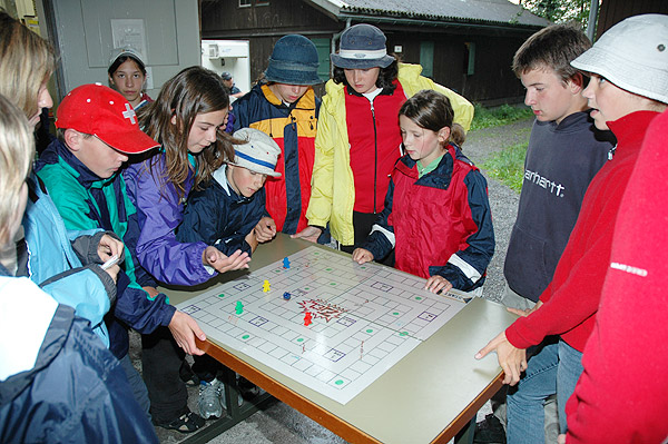 Zwischen dem Würfeln mussten einzelne Posten bewältigt werden. Sackhüpfen, Ballführen, Teebeutel werfen und weitere Disziplinen