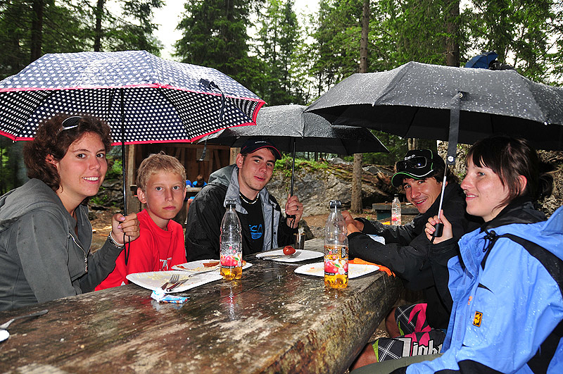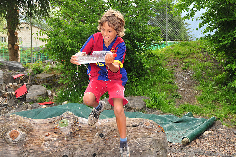 In 9 Gruppen wurde zum OL gestartet. Kaum waren die ersten drei Gruppen unterwegs erfolgte die erste Regendusche, die zum Glück aber nur von kurzer Dauer war. Insgesamt galt es 11 Posten zu finden welche auf einer Karte eingezeichnet waren und die es zu finden galt. An einigen von ihnen mussten auch Aufgaben gelöst werden. Geschicklichkeit in Form von Wassertransportieren oder Papierflieger basteln, Allgemeinbildung beim Quiz und eine starke Lunge beim Kirschsteinspucken sind ein paar Aufgaben welche es zu meistern galt. Daneben war natürlich auch die Gesamtlaufzeit ein Kriterium, was aber – wenn man dies von den Gangarten ableiten konnte - von den meisten Gruppen nicht allzustark gewichtet wurde. Zwischen dem Start der ersten Gruppe und dem Eintreffen der letzten Gruppe verstrichen knappe 4 ½ Stunden. Das gemeinsame Ende des OL’s war die idyllische Feuerstelle in Wald bei der Talstation der Engstligenalpbahn. Die Küche hatte feine Salate vorbereitet und Billy der Grilleur gab alles, damit wir heisse Würste verspeisen konnten. Dass der Salat plötzlich davonzuschwimmen drohte hatte nichts mit der Sauce zu tun sondern mit dem einsetzenden Regen. Ironischerweise fiel dann auch noch das Baden am Nachmittag wegen dem Regen ins Wasser. Der Regen liess glücklicherweise nach einer Weile wieder nach und so machten wir noch einen kleinen Abstecher zu den nahe gelegenen Engstligenfälle, dem zweitgrössten Wasserfall in der Schweiz, welche in zwei Stufen von je 370 Metern über eine Felswand ins Tal stürzt. Nach einem knapp stündigen Rückmarsch entlang der Entschlige erreichten wir um 16:00 Uhr bei Sonnenschein das Lagerhaus. Der restliche Nachmittag bis zum Nachtessen bot Gelegenheit, draussen zu spielen. Von der Küche her drang der Duft von Älplermagronen zu uns, zu welchen es natürlich auch noch Apfelmus gab. Nach dem Essen bot sich nochmals Gelegenheit, sich draussen vor dem Lagerhaus zu verweilen. Traditionen sind bekanntlich zum pflegen da, so auch jene mit dem Dessert. Meringues mit Vanilleglace und Rahm fanden erwartungsgemäss reissenden Absatz. Im Anschluss erfolgte dann die mit Spannung erwartet Rangverkündigung. Zuoberst auf dem Podest landete schlussendlich die Gruppe 4 mit Matthias Wigger, Luca Nicolussi, Flurin Wigger und Lukas Gretener.